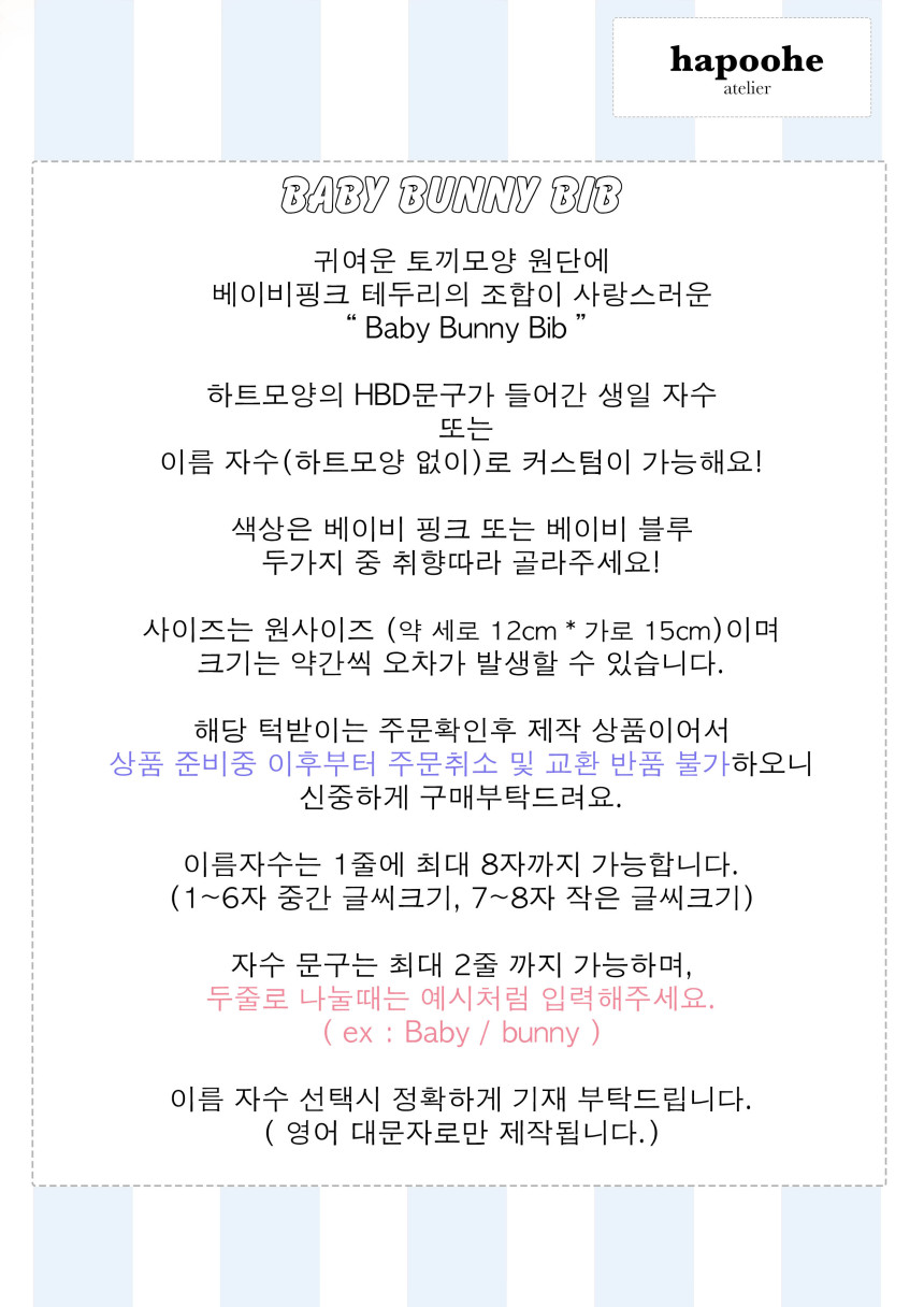 ( 해당 턱받이는 주문제작이어서 상품준비후 주문 취소및 교환 반품이 불가합니다.