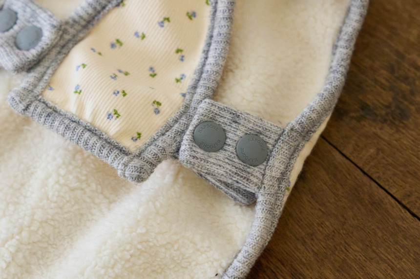 하푸해 각인을 새긴 옆구리 똑딱이 단추로 허리 조절도 가능해요!
