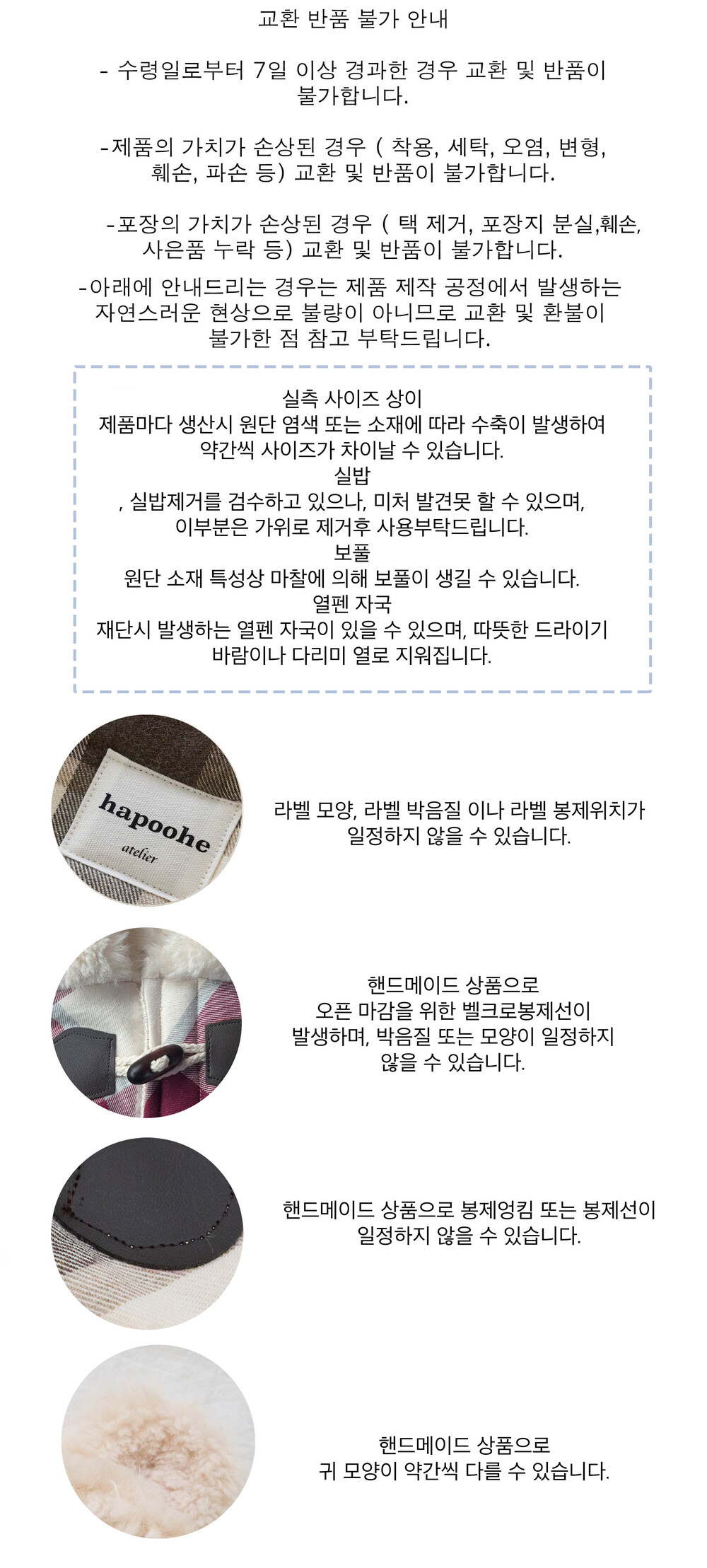 핸드메이드 제품으로 크기나 박음질이 일정하지 않을수 있으며 이에관한 교환및 반품은 불가합니다.