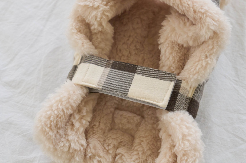 체크무늬 원단과 도톰한 퍼안감에 따뜻한 압축솜을 내장하여