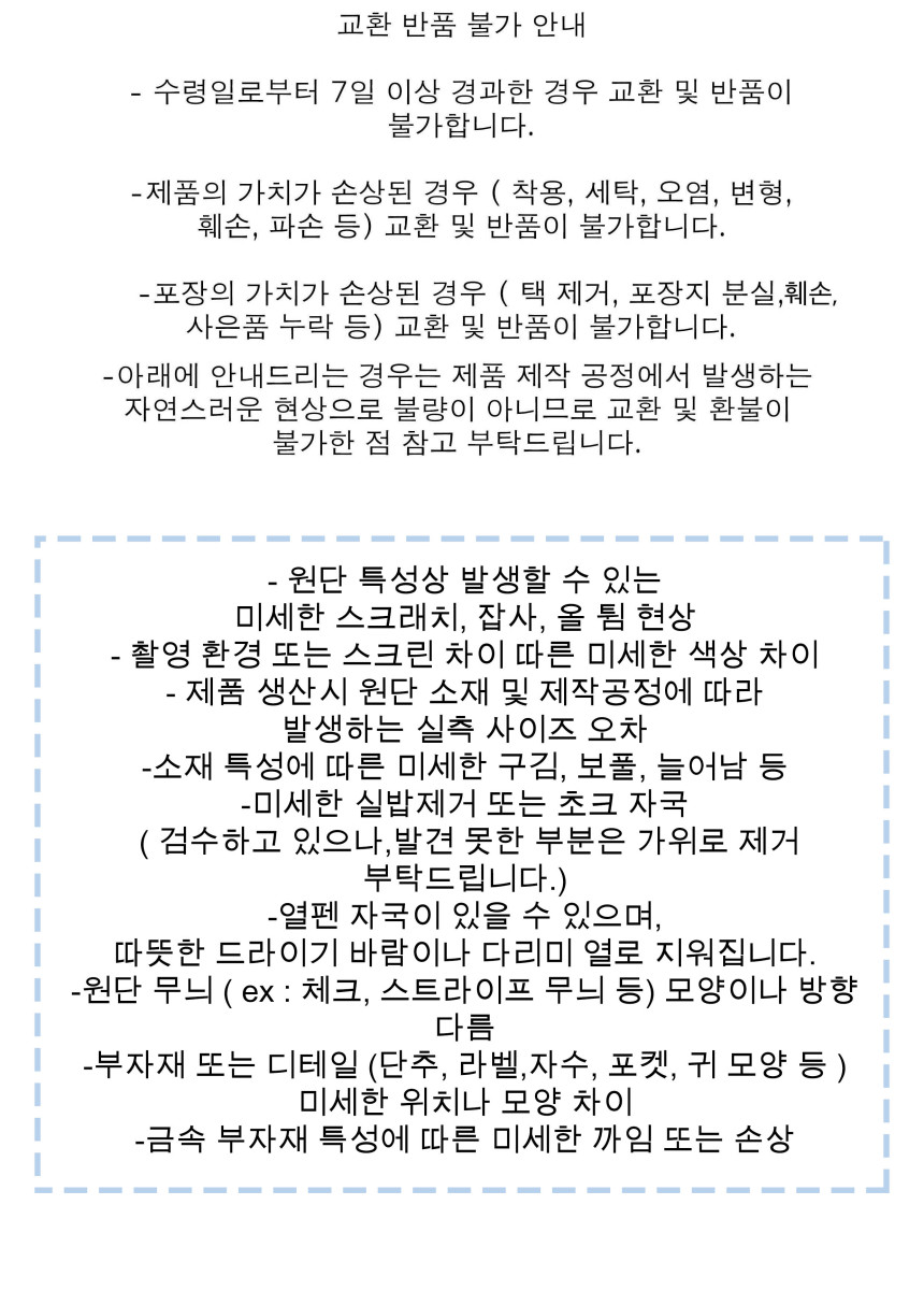 교환/반품 비용: 7000원 (타 택비 선불 발송시 3500원)