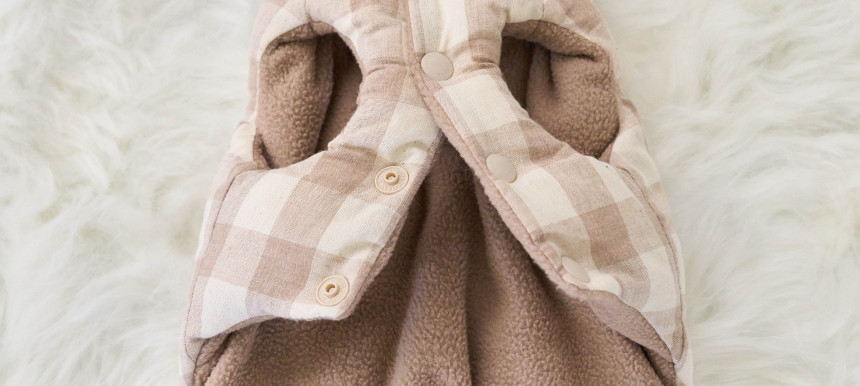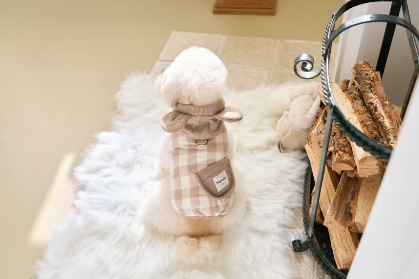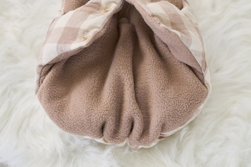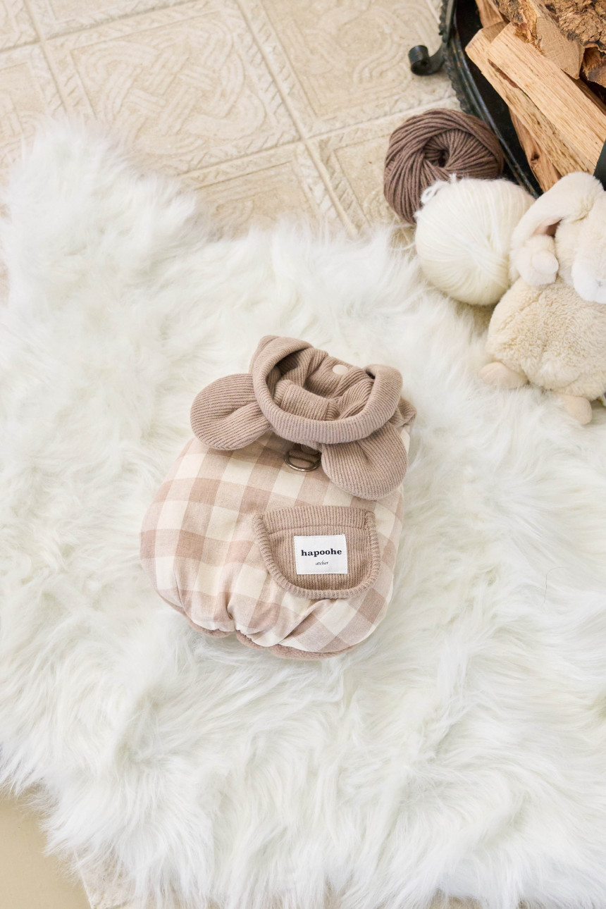 -겉감은 체크무늬 원단, 안감은 도톰한 후리스 원단,