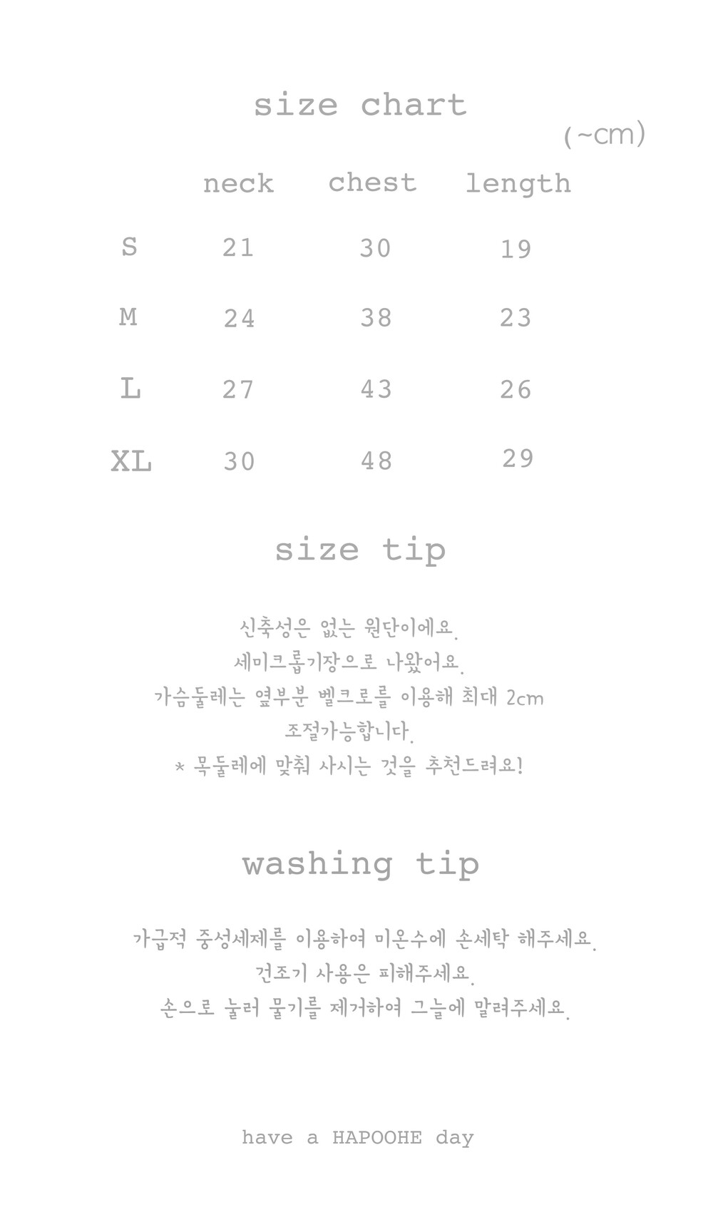 목부분이 단추 트임과 옆부분의 벨크로를 부착하여 착용하시기 쉬운 제품입니다.