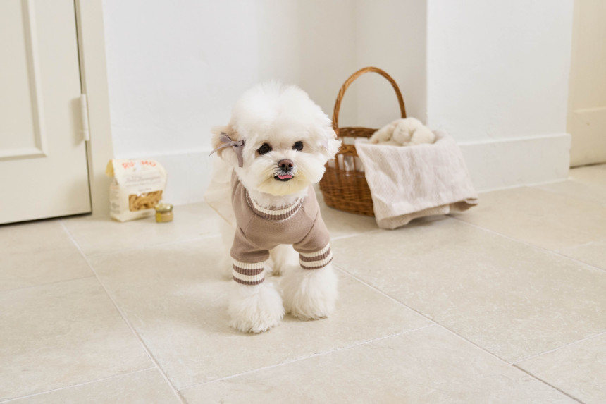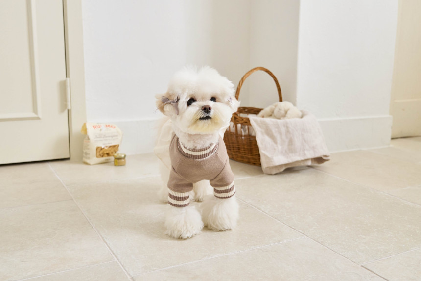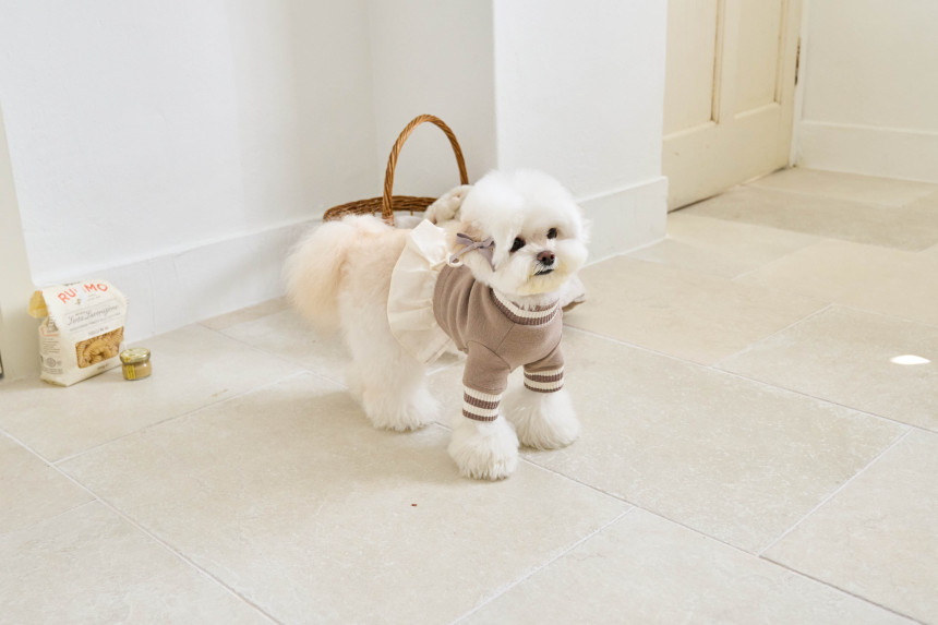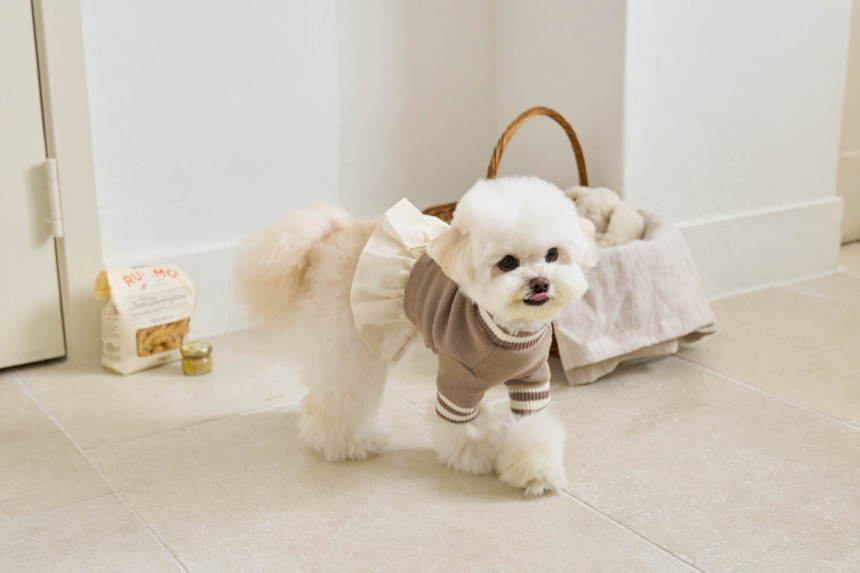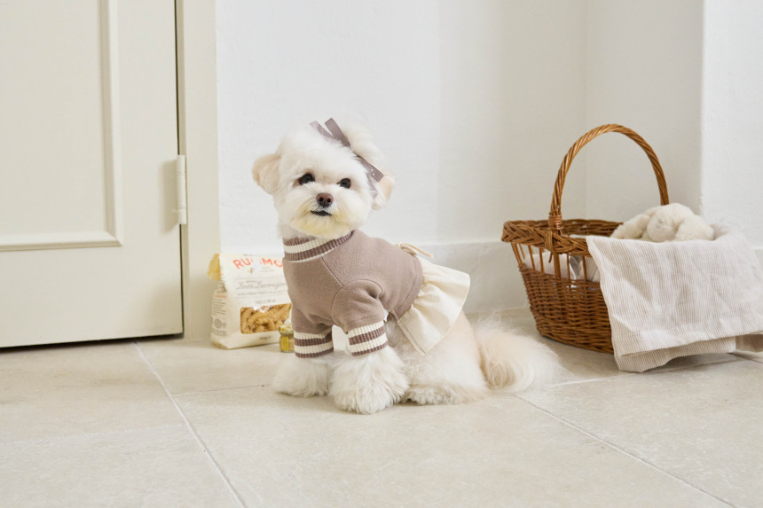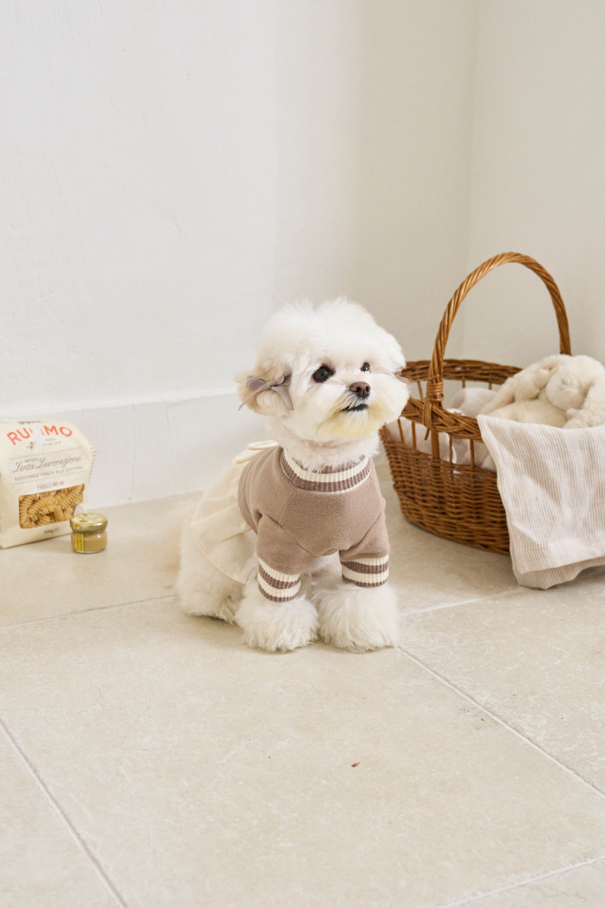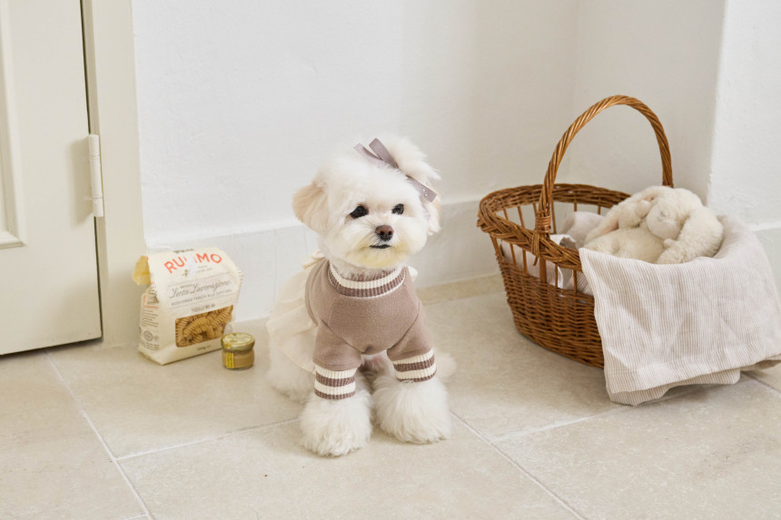 따뜻한 부드러운 30수 후라이스 원단에 골지 줄무늬 원단을 포인트로 넣어
