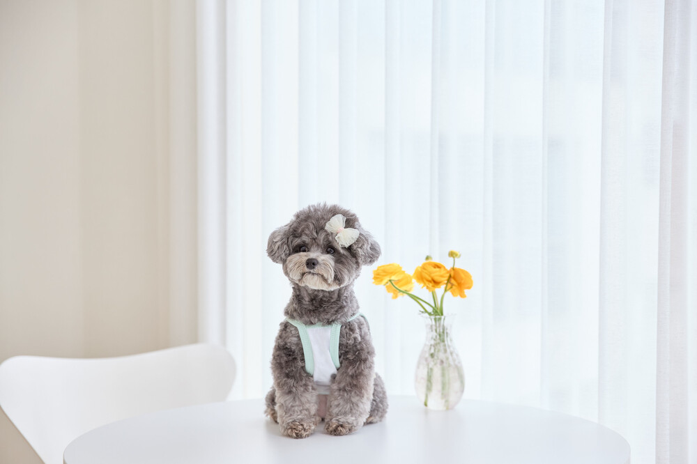 40수의 얇은 면 100% 소재로 반려친구들의 피부에도 자극이 없어 실내외 어디든 추천드려요.
